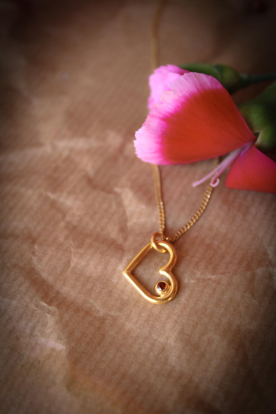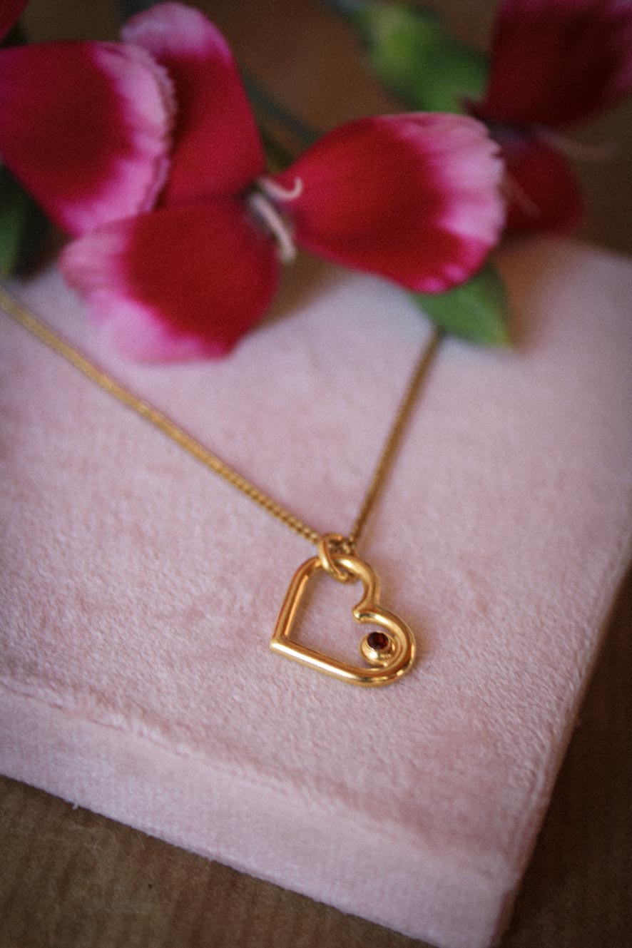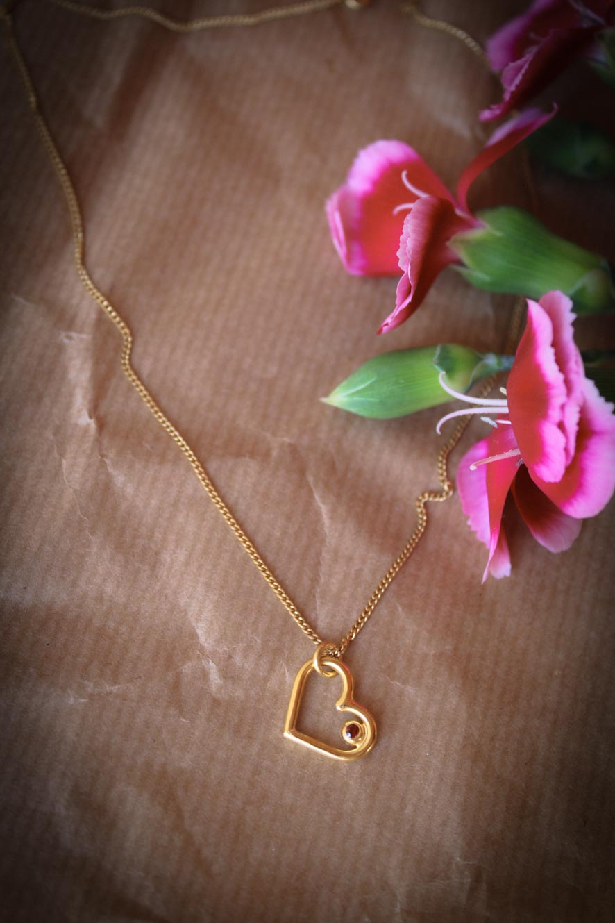 Herz-Anhänger mit Granat und vergoldeter Kette