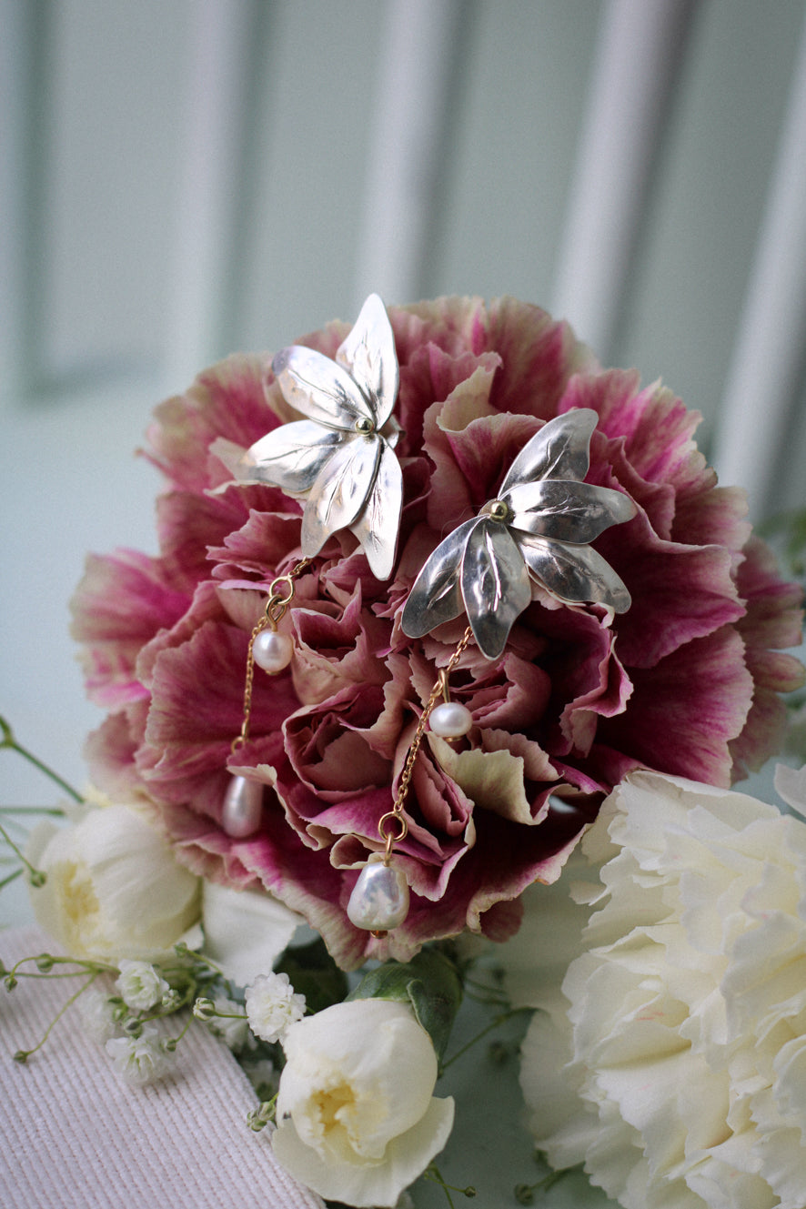 Blumenohrschmuck mit Perlen